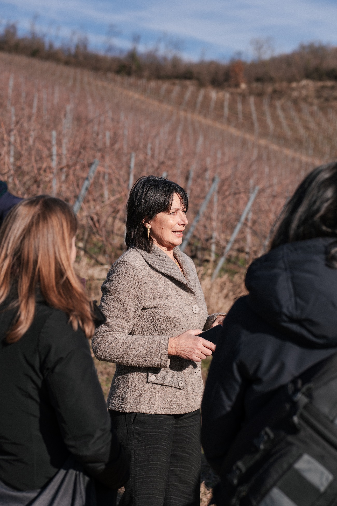 L’esperienza inizia presso l’azienda, con un percorso facile ad anello tra filari e ulivi: una camminata lenta, pensata per leggere il paesaggio, comprenderne la composizione geologica, la biodiversità, l’esposizione e le scelte agronomiche che ne derivano. Non una semplice passeggiata, ma un momento di approfondimento sul “come” e sul “perché” di ogni gesto agricolo.